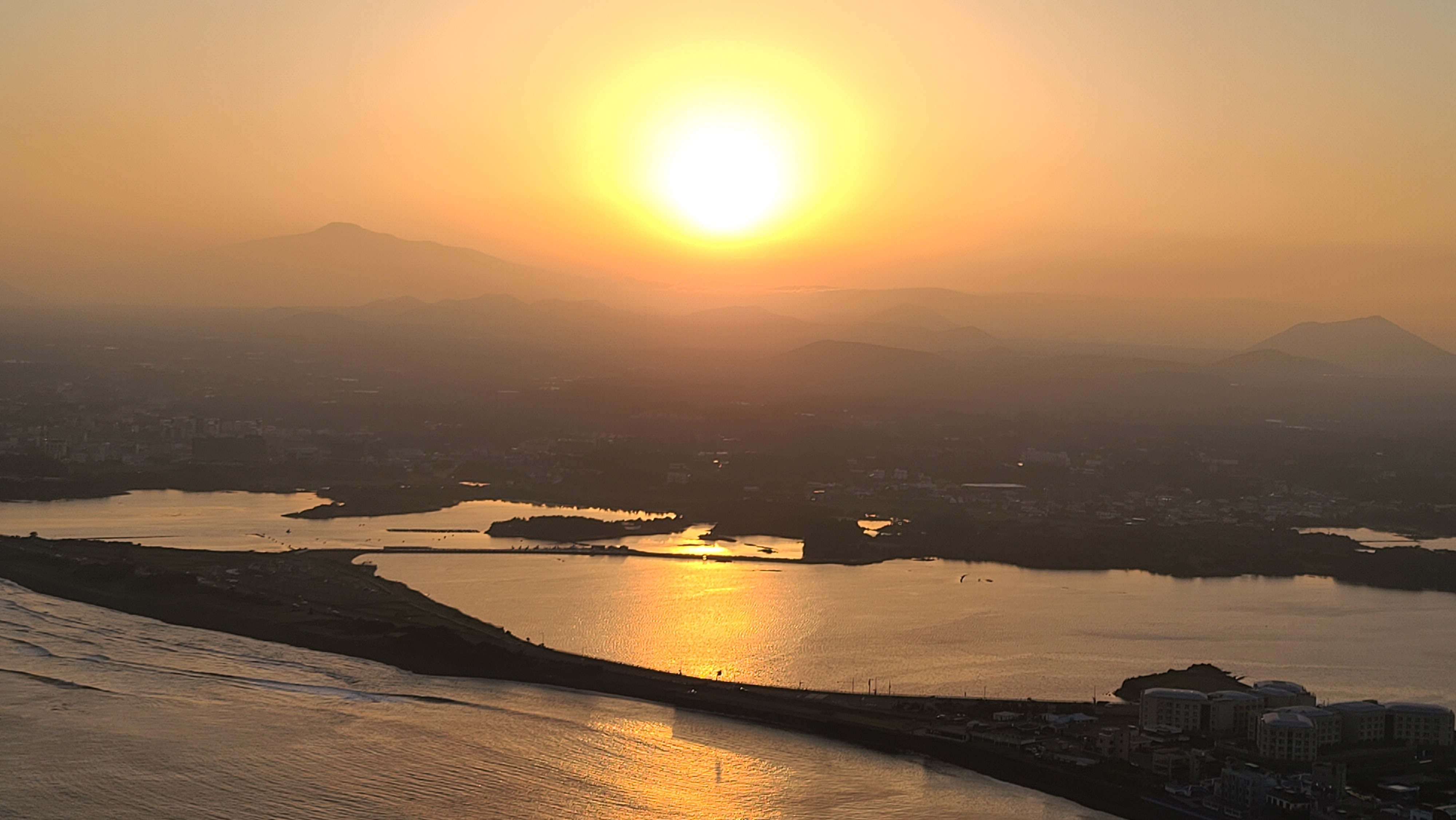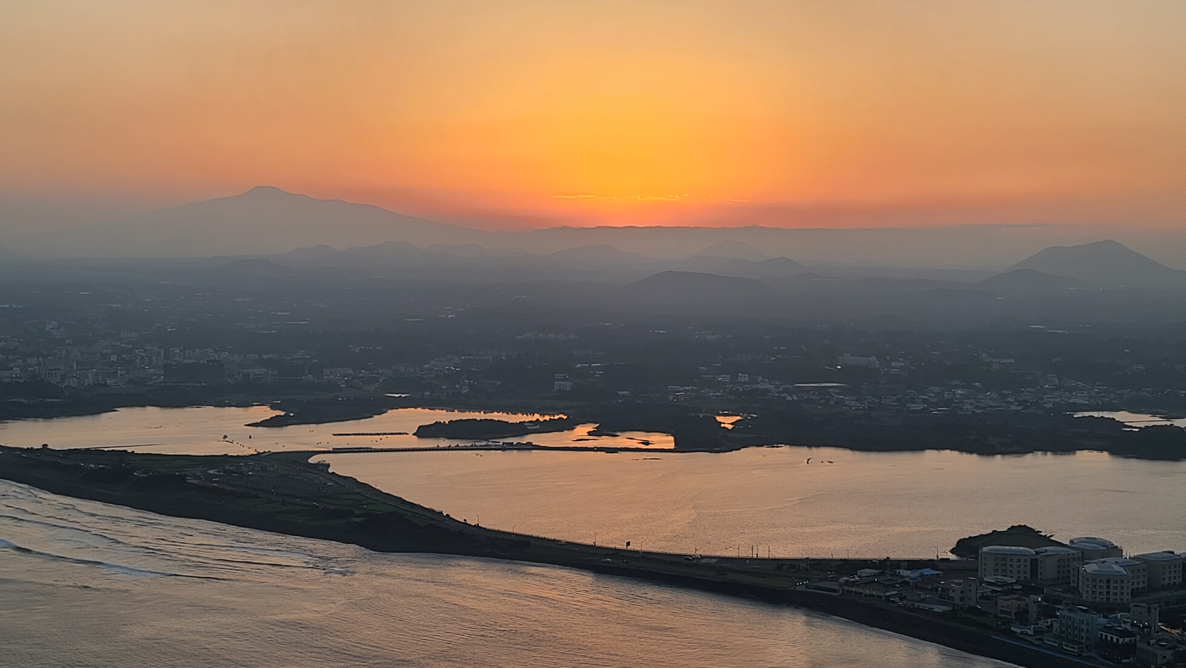 지는 해를 품은 한라산은 일상의 공간에 스며든다.