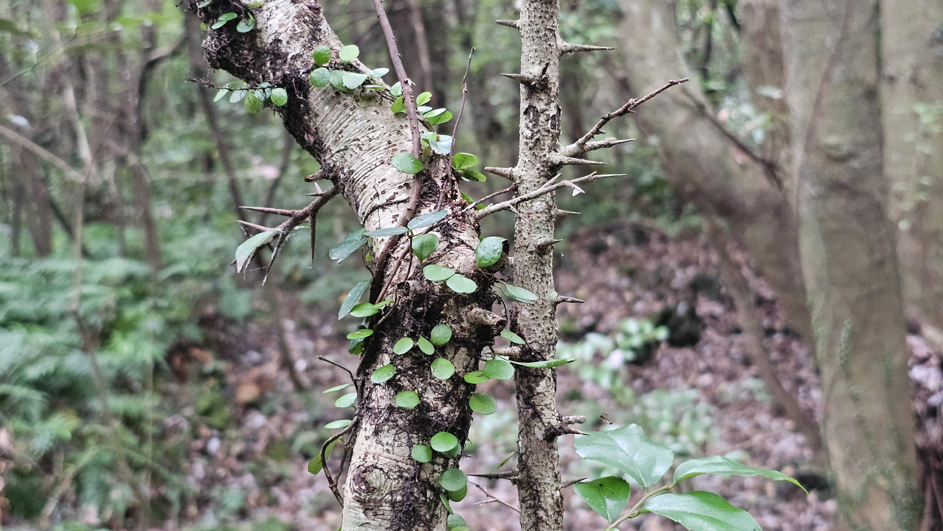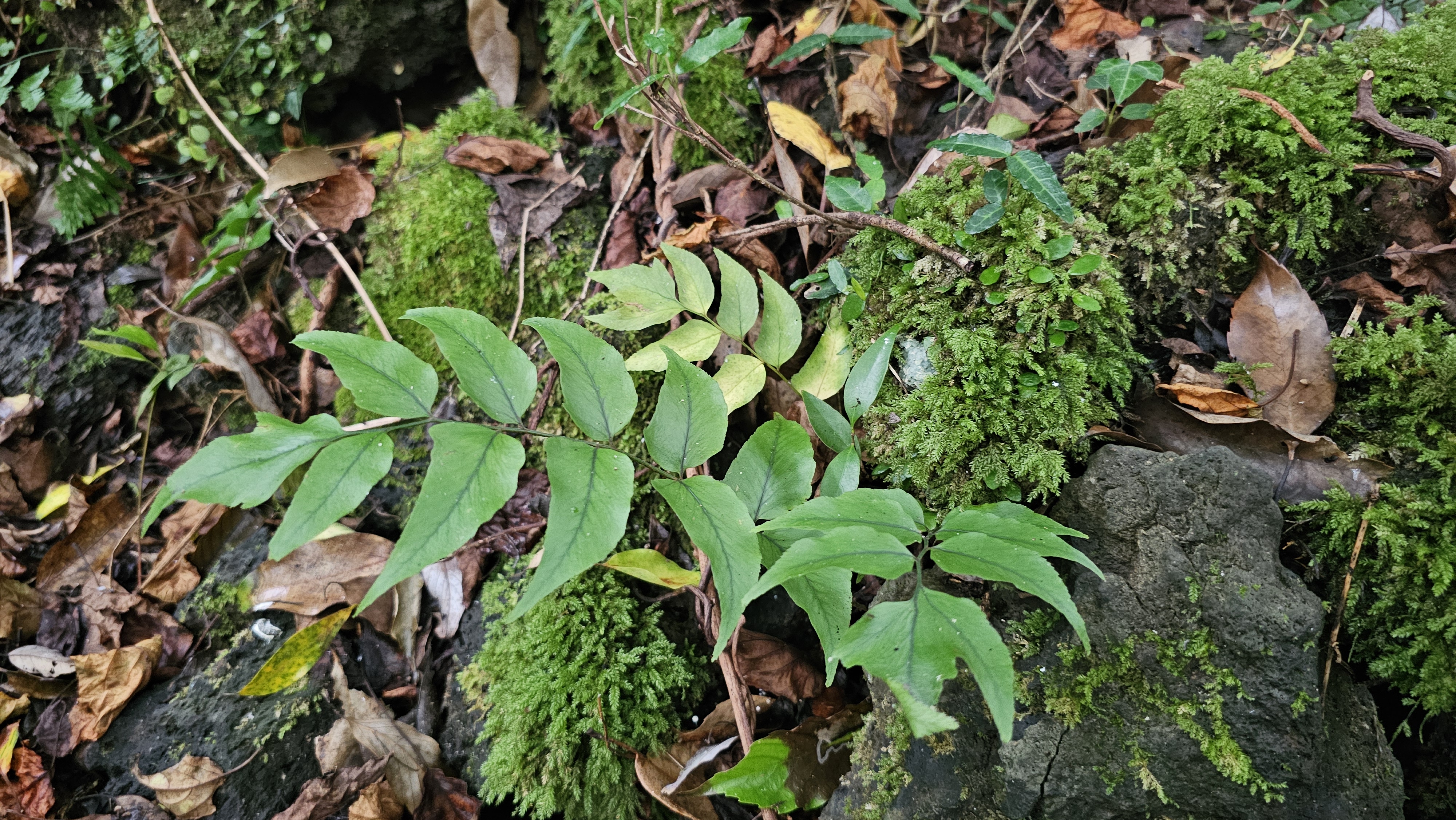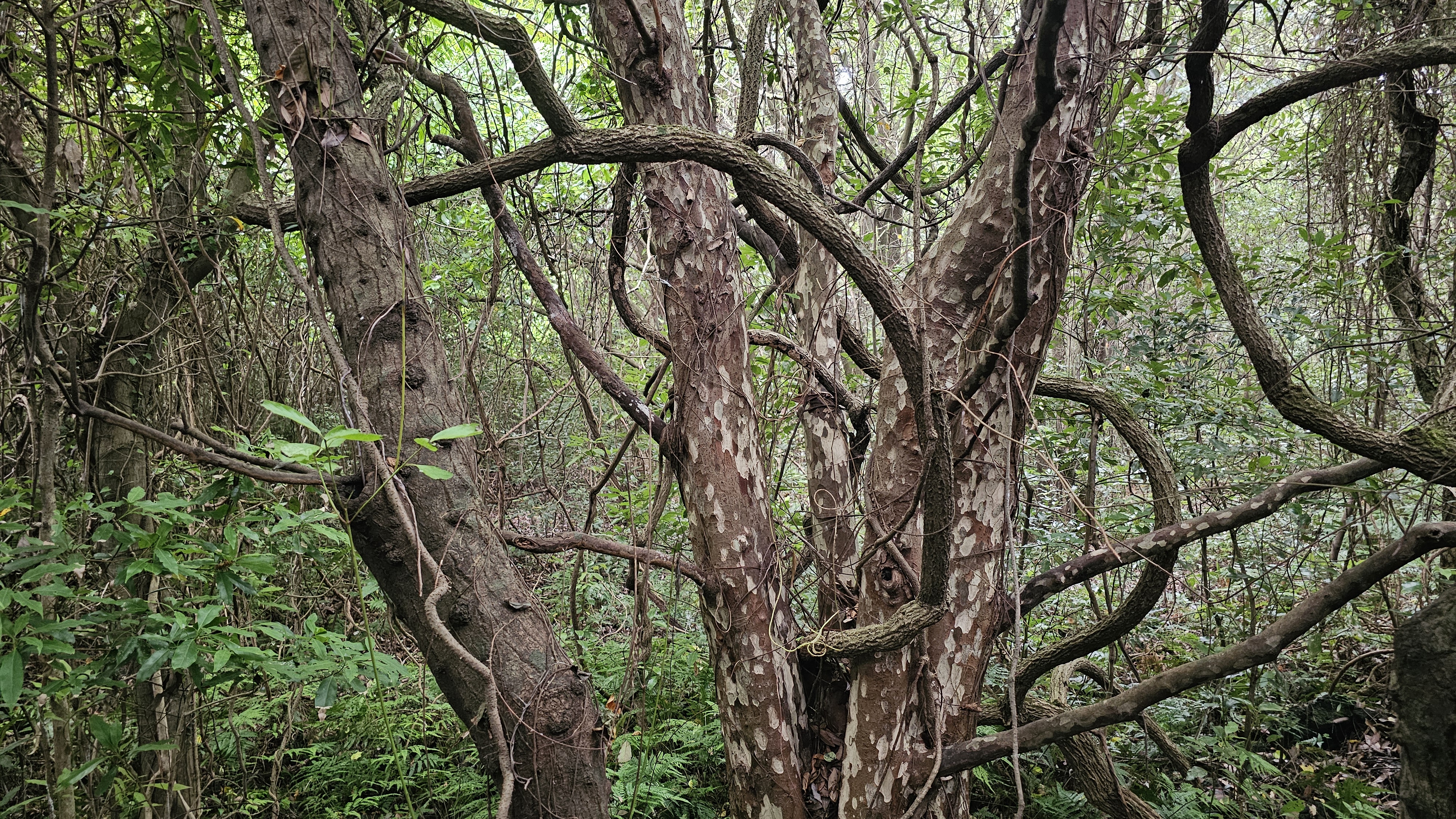 마삭줄, 콩짜개덩굴, 꼬리고사리 등이 나무와 암석에 붙어 자라면서
