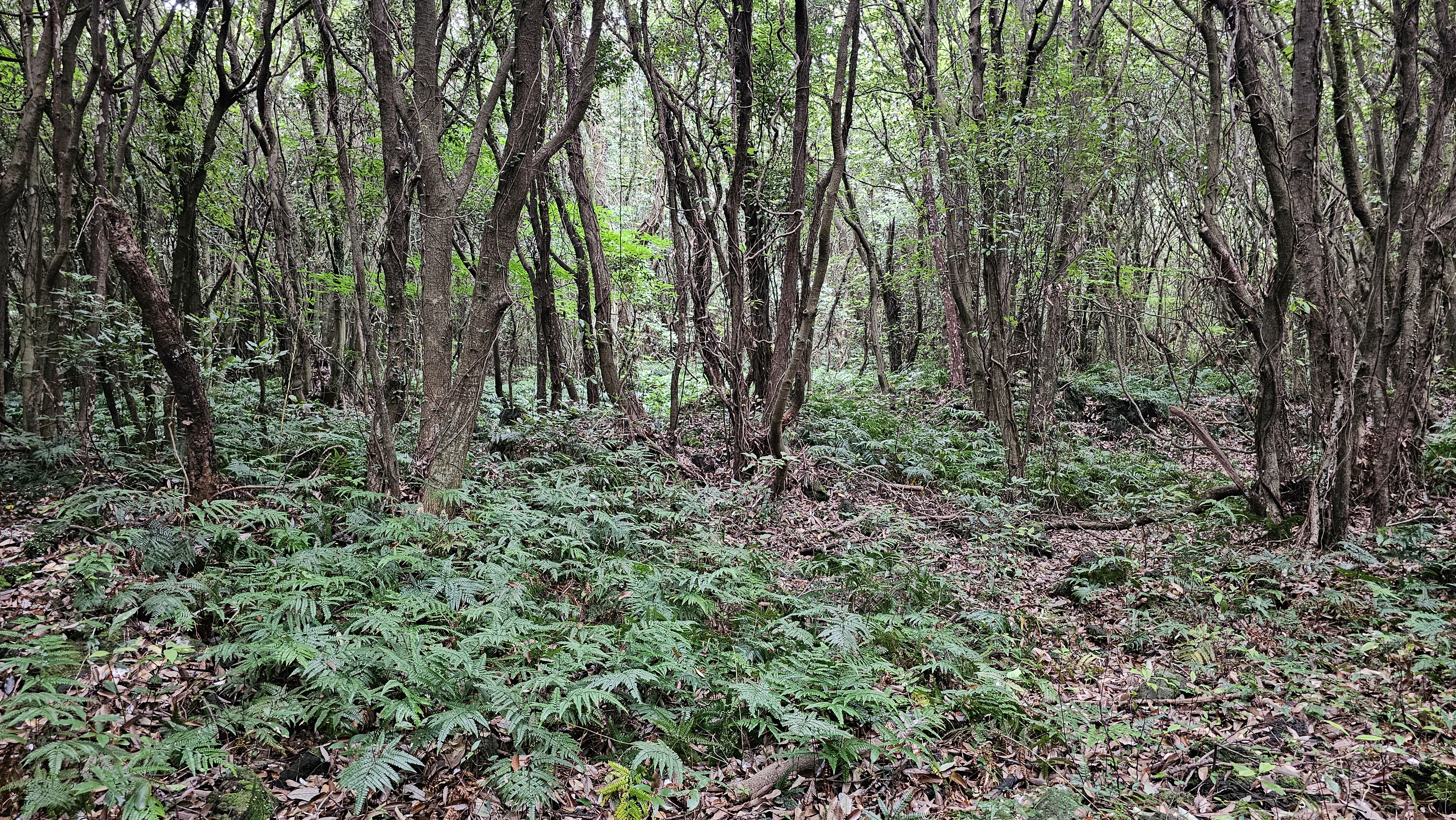 가시덤불과 나무들이 뒤엉켜있는 곶자왈은