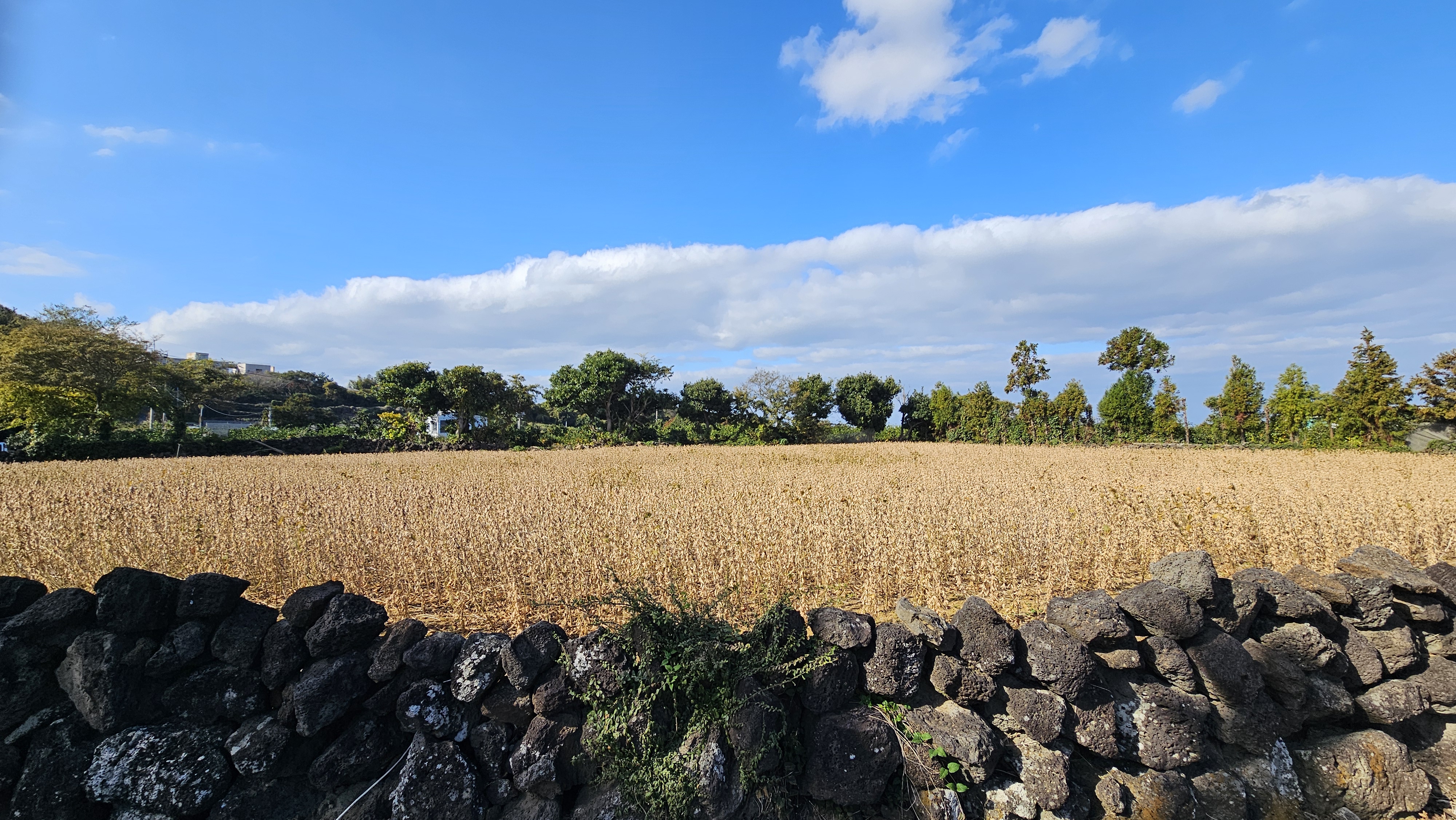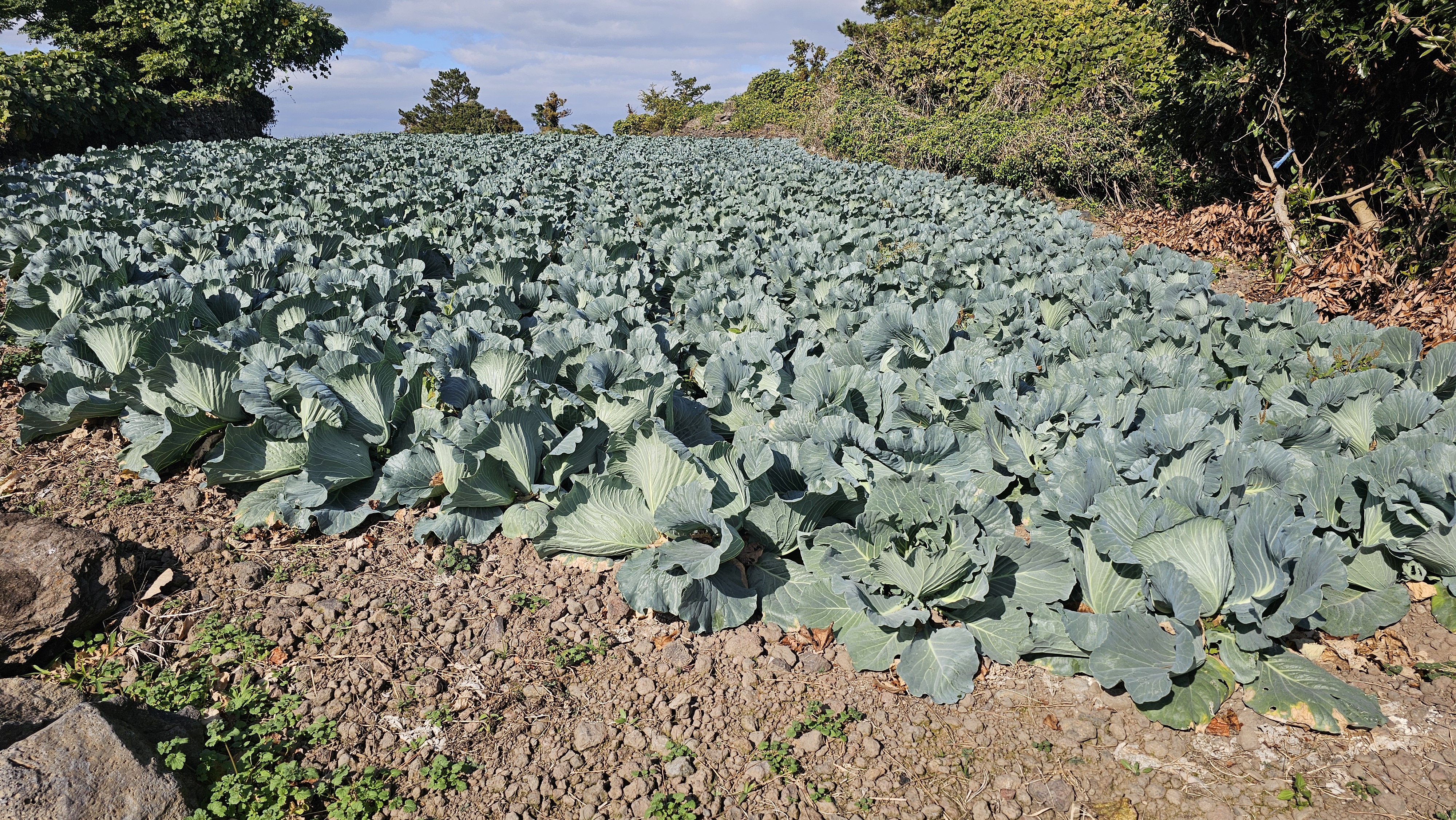 구멍 숭숭 밭담 안으로 부지런한 농부들의 흔적 풍성한 초록의 잎들