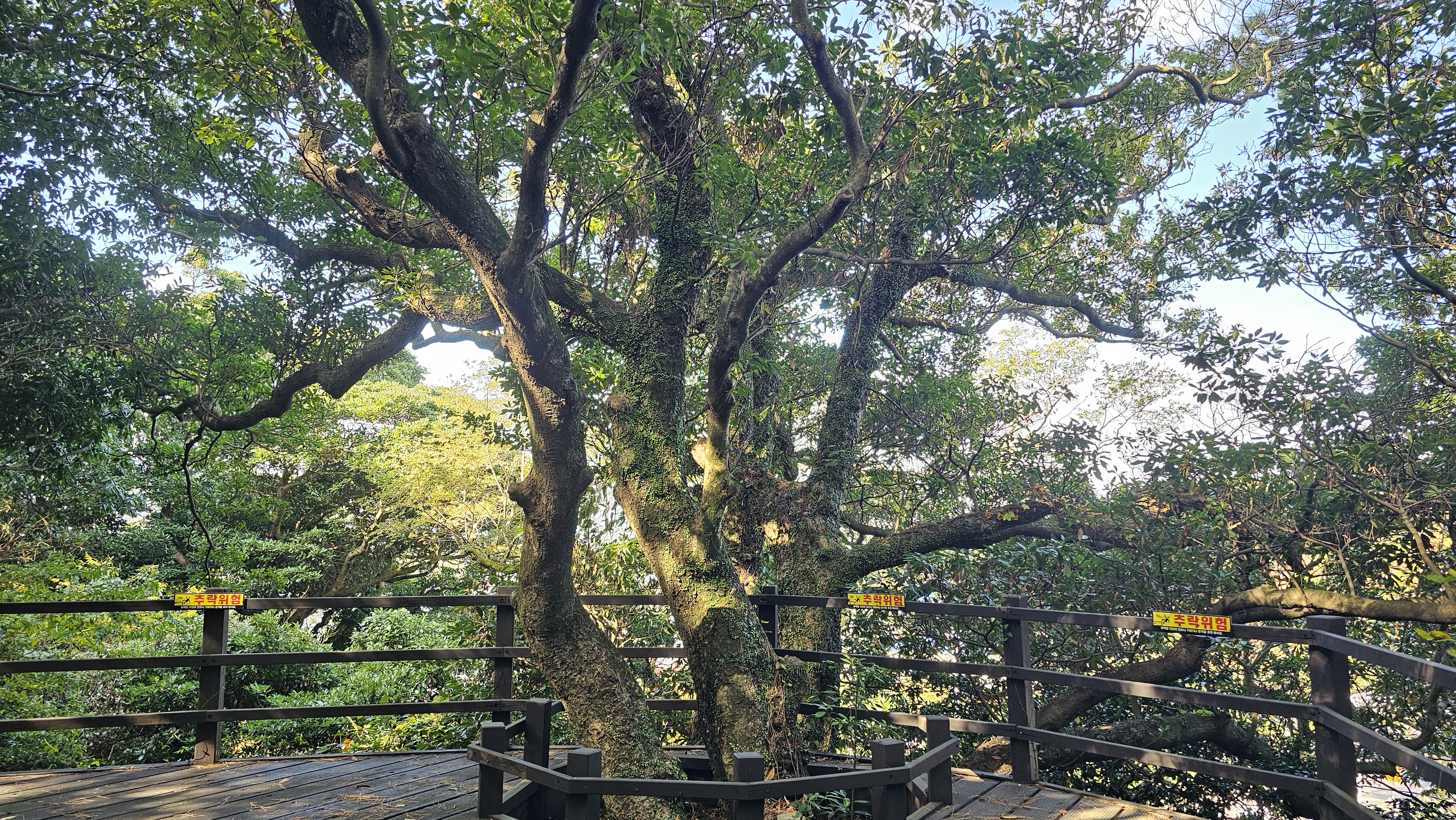 온난한 기후대에서 자생하는 후박나무, 생달나무, 종가시나무 등이 상층목을 이루고
