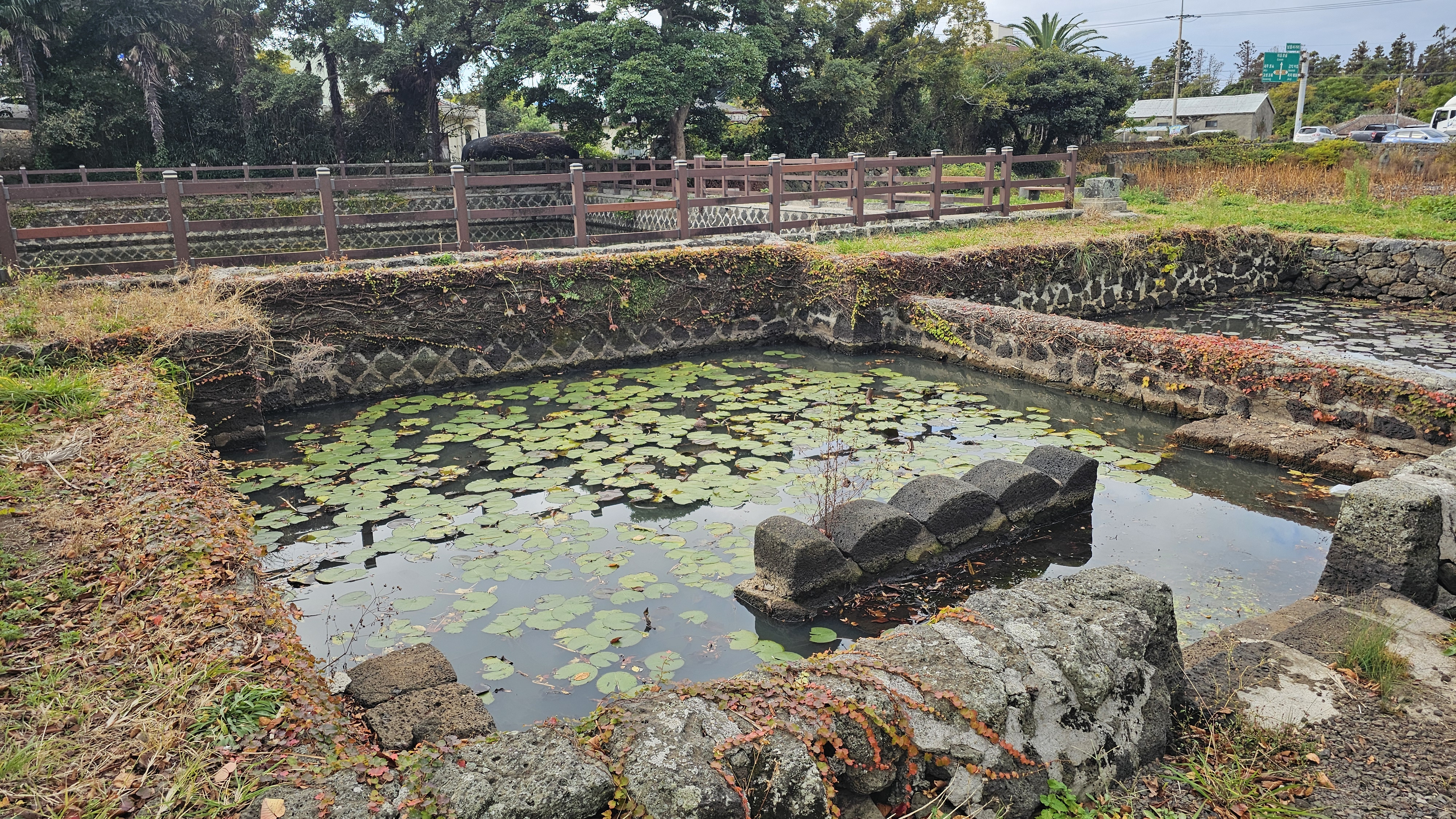 큰 못과 작은 연못 2개를 만들어 물이 밑으로 통할 수 있도록 하였고