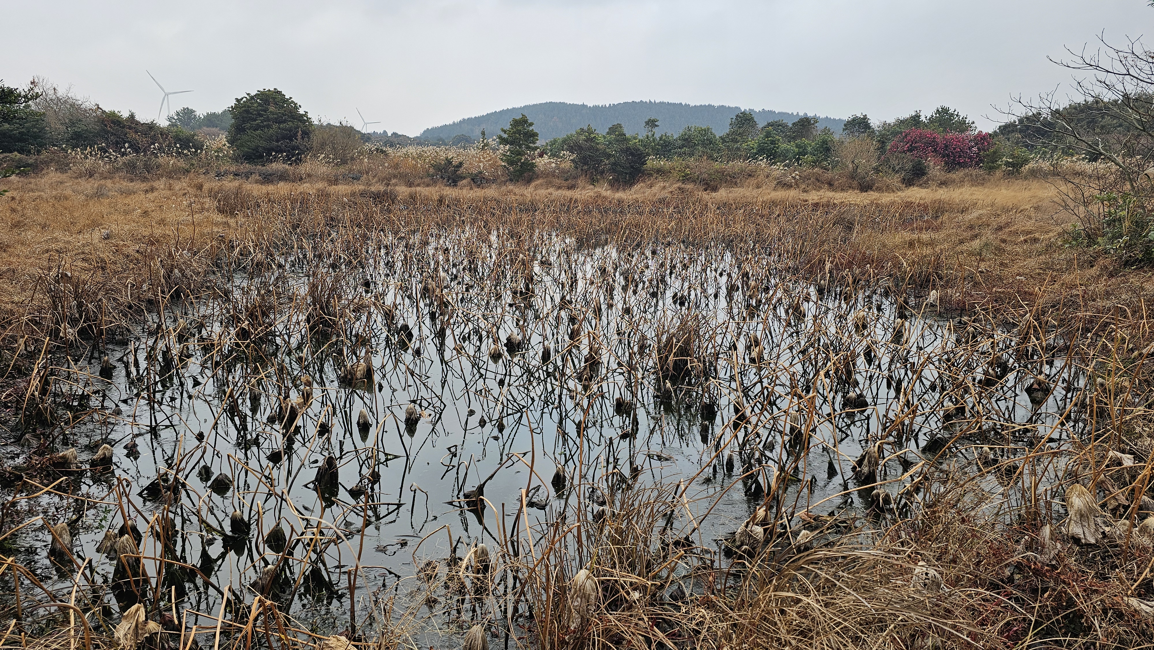 억새가 무성해 접근이 어려웠던 통한못에는 연꽃 흔적만이 남아 쓸쓸함이 느껴지고