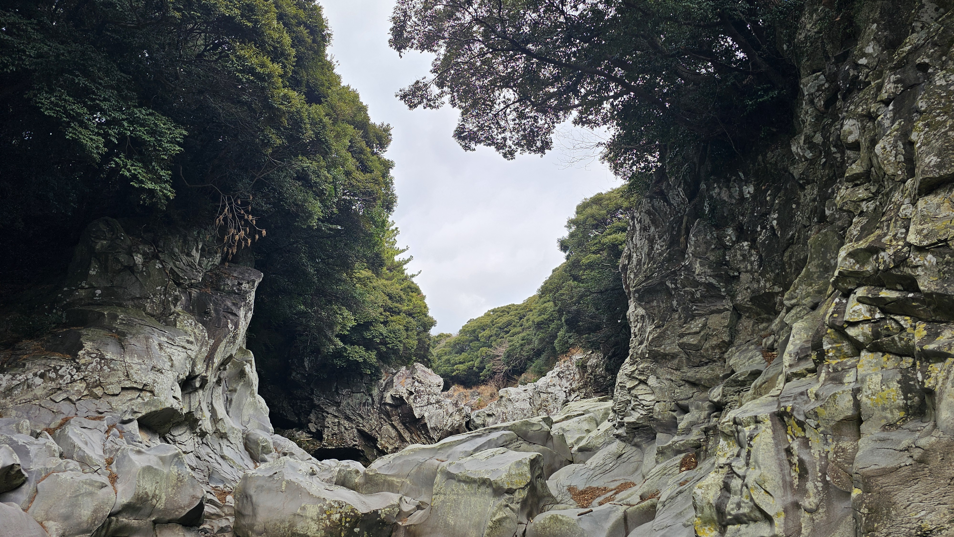 남내소 주변은 울창한 구실잣밤나무가 에워싸고 있고