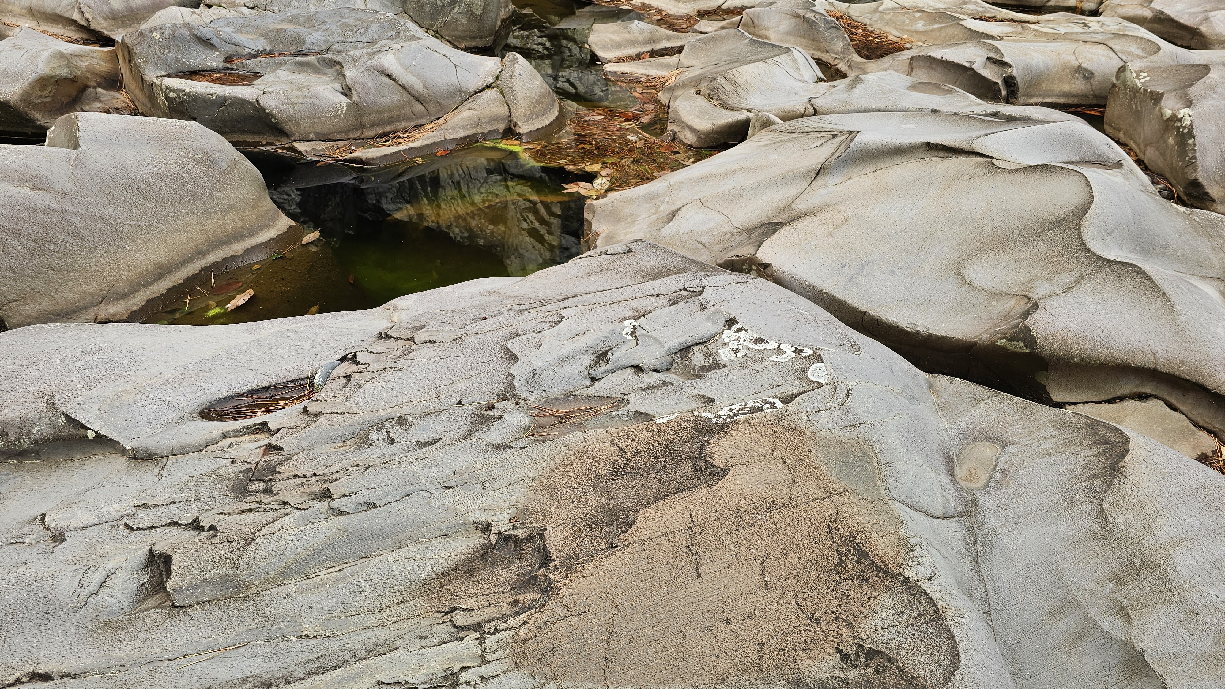 수직으로 이어지는 암벽을 따라 물이 고여있는 모습을 볼 수 있다.