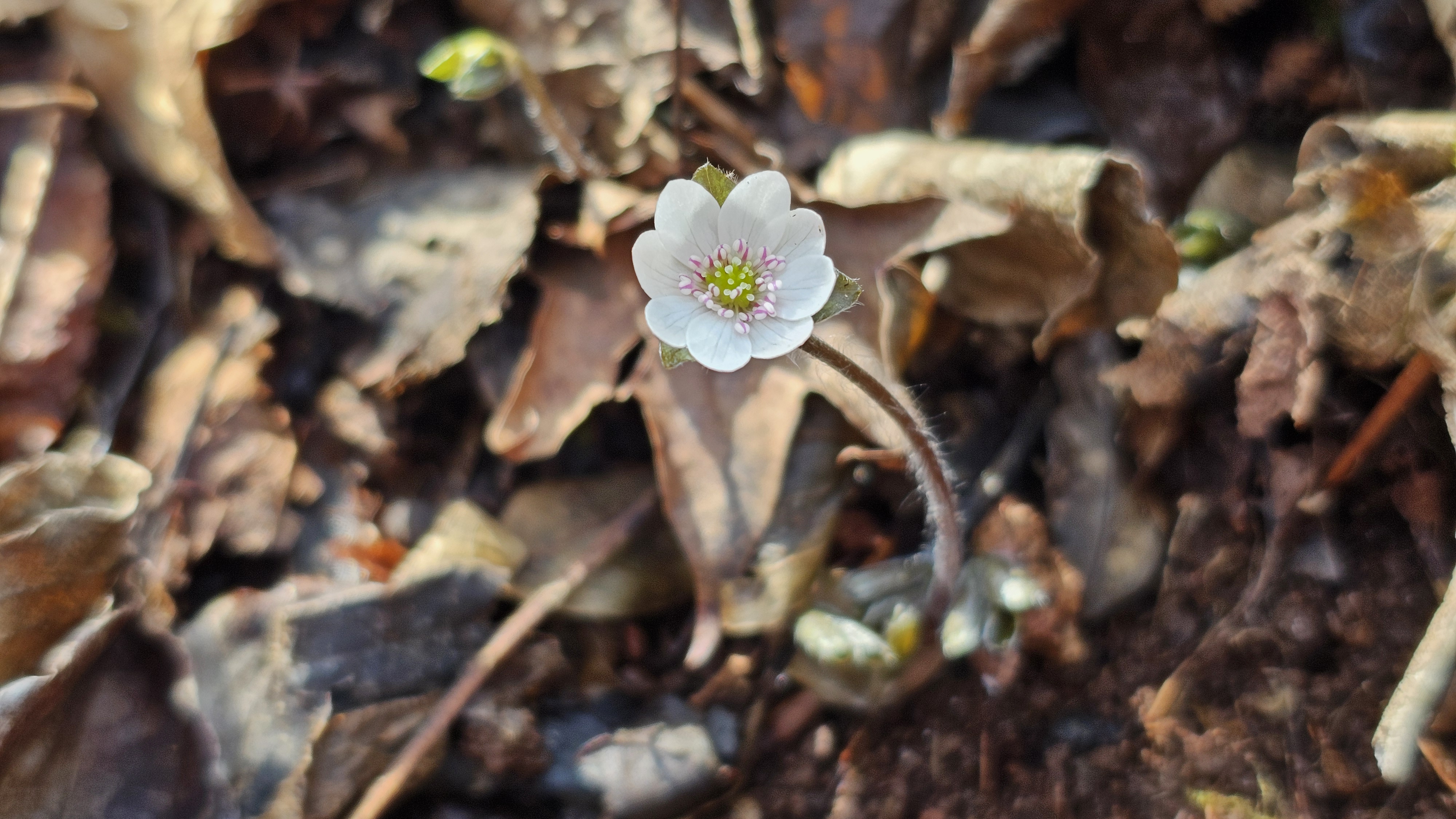 하얀 털옷을 입고 기지개 켜는 '새끼노루귀'