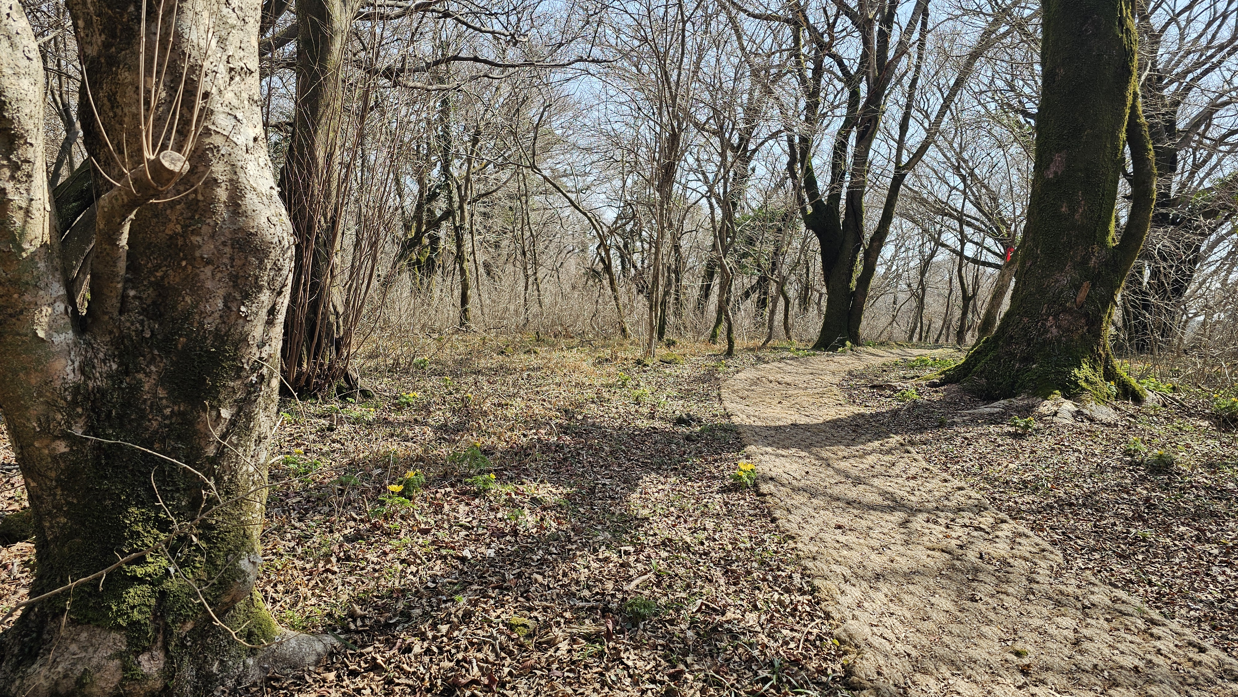 한참을 걸어도 앙상한 나뭇가지가 아직이지만 능선마다 하나, 둘 보이기 시작하는